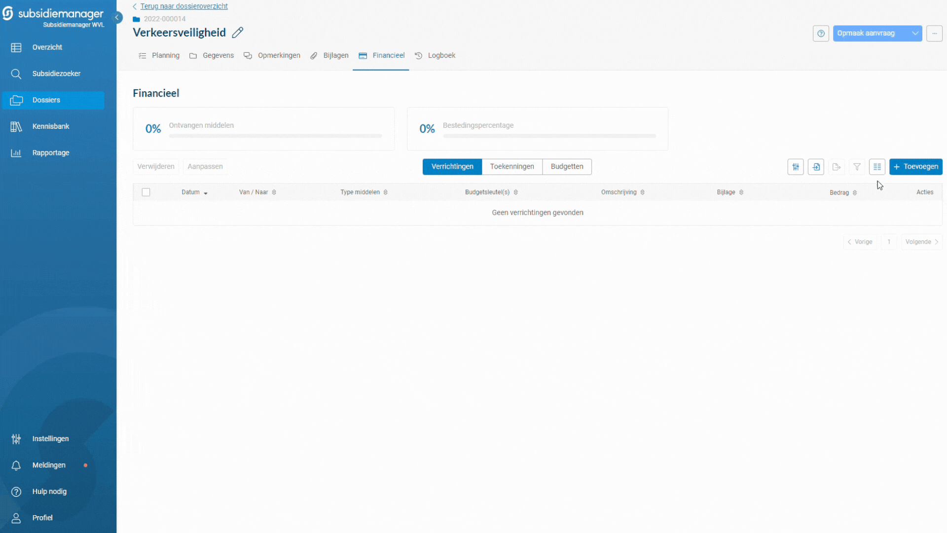 Onder het tabblad ‘Rapportage’ is een nieuwe knop toegevoegd: ‘Financieel’. Deze handige functie biedt gebruikers de mogelijkheid om alle financiële gegevens, zoals verrichtingen, toekenningen en budgetten, over alle dossiers heen in één overzicht te bekijken en eenvoudig te exporteren.