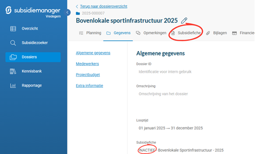 • De volledige administratieve opvolging alsnog correct registreren doordat de subsidiefiche automatisch wordt gekoppeld.