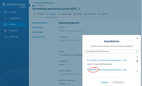 Wist je dat je in Subsidiemanager ook subsidies met een verlopen deadline nog altijd kunt koppelen aan een dossier?